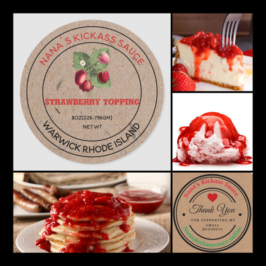 Strawberry Topping 🍓8oz $6.99Strawberry topping is sweet and jam-like, ripe strawberry flavor with bursts of strawberry pieces and seeds throughout. Put on top of cheese cake, ice cream, cereal or waffles. 100% all natural with no preservatives