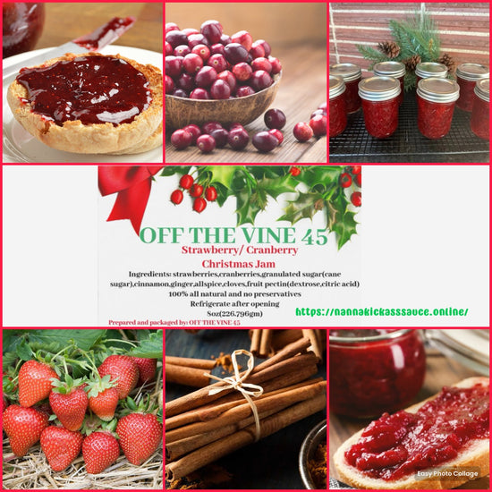 Strawberry/Cranberry Christmas Jam 🎄 8oz Jars $ 8.99This delicious spiced jam is both sweet and tart with a warm and comforting hint of seasonal spice. Made with strawberries, cranberries, cinnamon, ginger, allspice, and ginger. Perfect on toast, bagels, or mixed into your yogurt. Perfect to use between your homemade layer cake. 100% all natural with no preservatives
