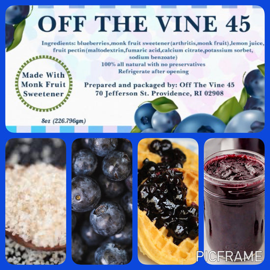 Blueberry 🫐 Fruit Spread made with monk fruit sweetener 8oz jar $11.99Blueberry Fruit Spread with Monk Fruit Sweetener our fruit spread is gluten free, non-GMO, with zero calories and zero added sugars. Perfect for diabetics, keto diet, kosher. Perfect for PB& J sandwiches, toast, and bagels. Add it to your favorite yogurt. 100 % all natural with no added preservatives