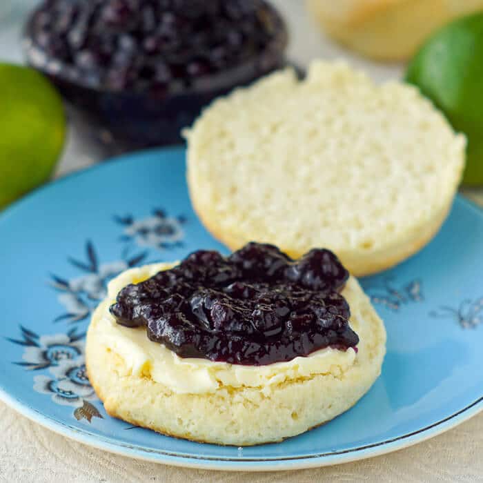 This delicious homemade blueberry jam is made with fresh blueberries, lemon and just the right amount of sugar to give you that summer treat that you want to slather on everything !!!